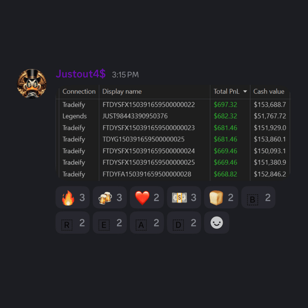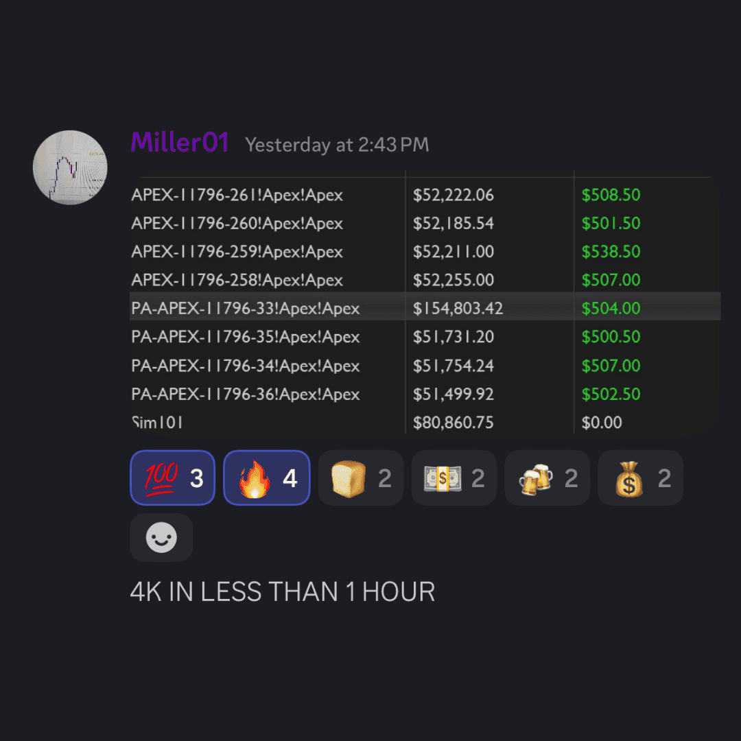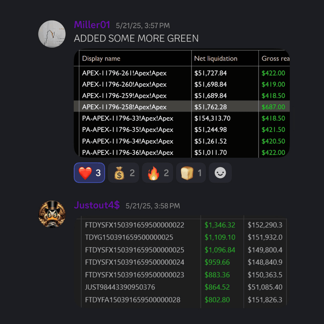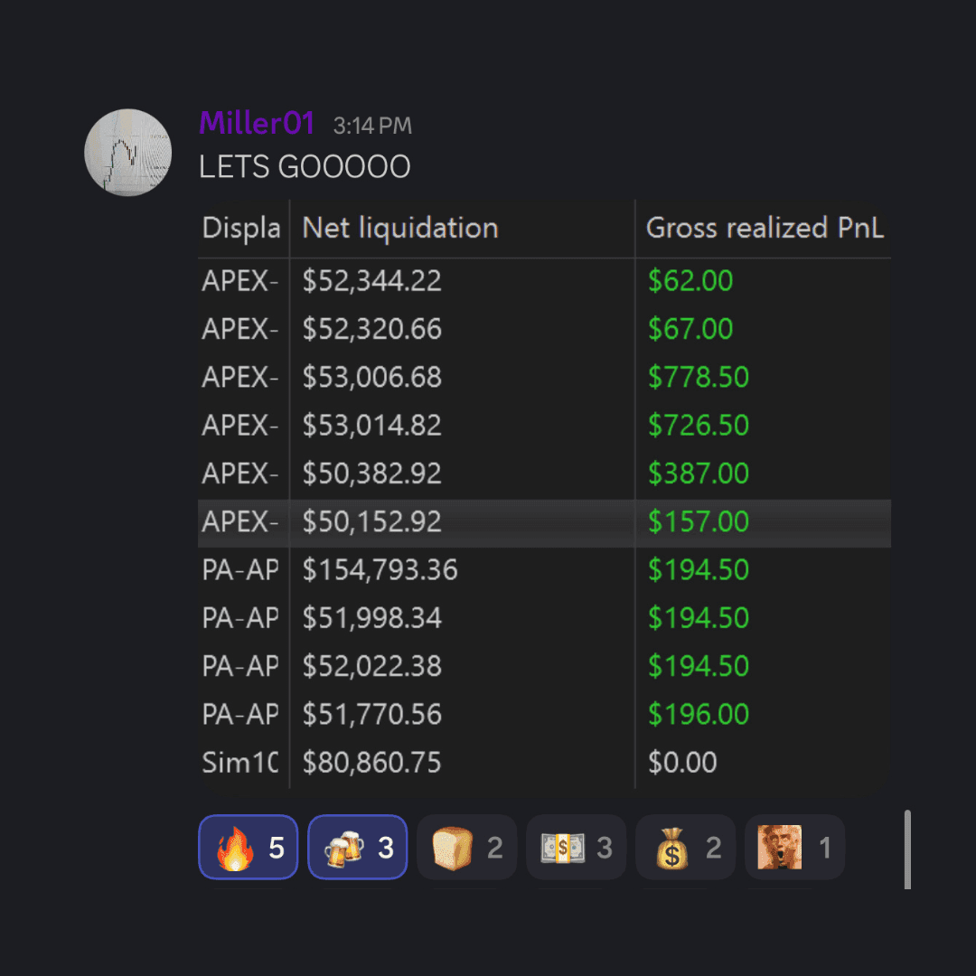 Learning setups and discipline here have been a game-changer. A $0 day beats a red one. This room provided me with clarity, value, and support. Truly the best investment I’ve made.
