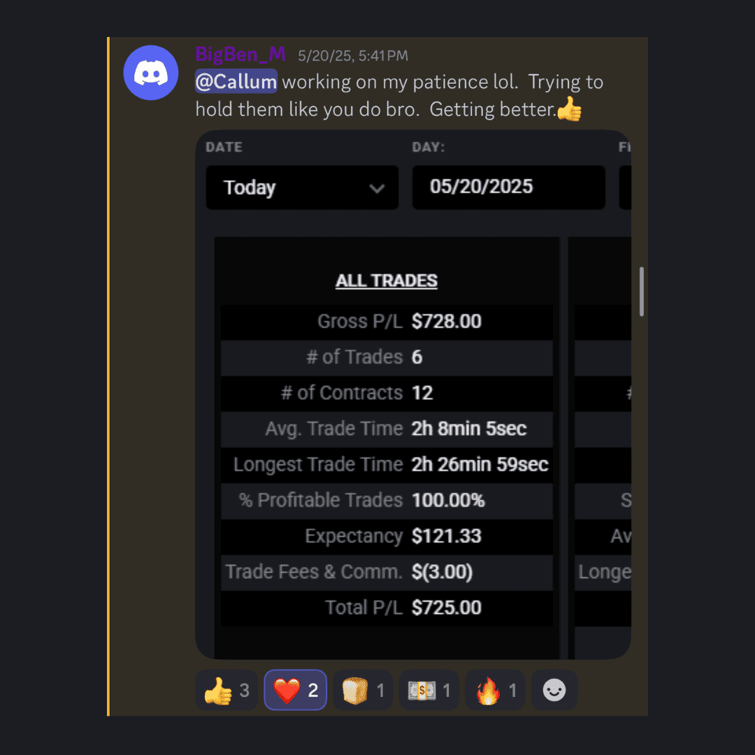 This room is top-tier. Callum’s calm energy and detailed trade logic help deepen your understanding of the market. Highly recommended.