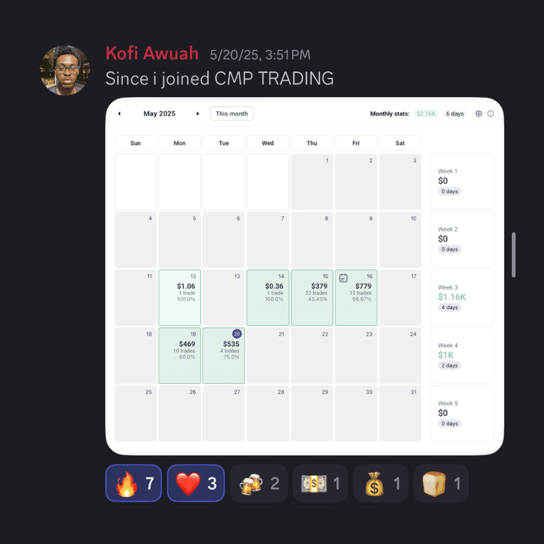 After trying everything, I nearly gave up—until I found this room. The education, accountability, and clarity finally made trading feel possible. I’m profitable now and finally feel like I belong