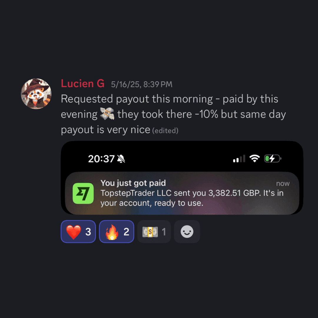 He has successfully completed proprietary trading firm evaluations with respected companies such as Topstep, Apex, Leeloo, and Take Profit Trader. These experiences shaped his skills in discipline, risk management, and trader development.