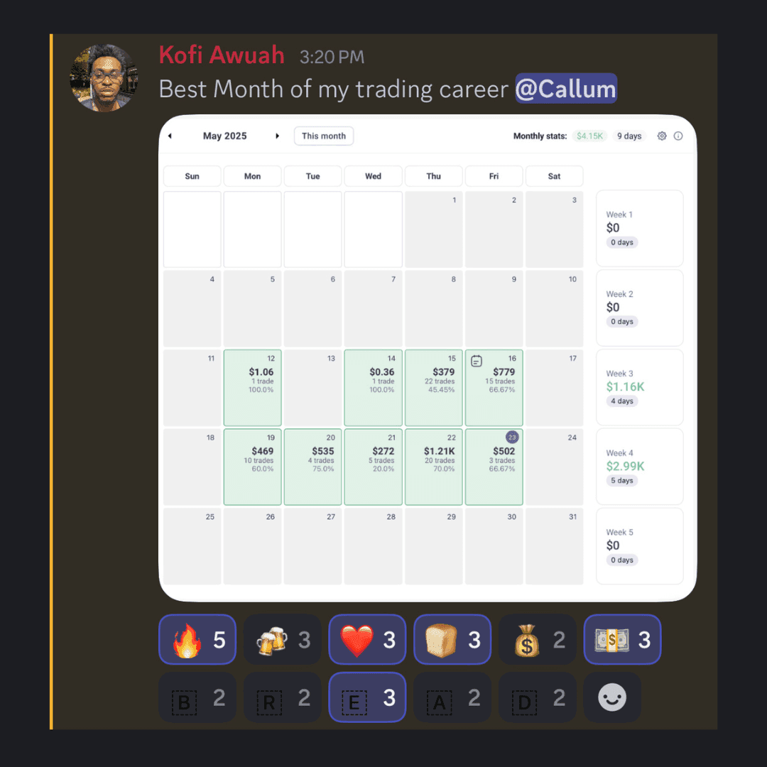 Even as a trial member, I’m impressed by Callum’s professionalism. He only trades when his rules are met, showing strong discipline and control. Extremely impressed